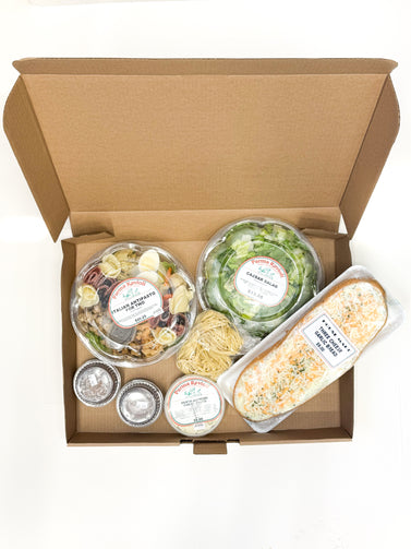 All the tastes of northern Italy in one meal. This indulgent platter features an impressive antipasto selection, silky linguine in pesto alfredo sauce, a Caesar salad with our house-made dressing, cheesy garlic bread, and a chocolate tartufo. Items included: Antipasto Platter, Linguine for 2, Pesto Alfredo Sauce, Caesar Salad, Cheese Garlic Bread & 2 Chocolate Tartufo. No Substitutions.