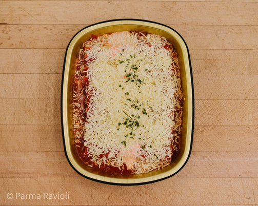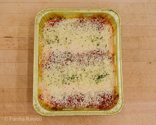 Filling/Sauce: Ricotta Cheese, Spinach, Parmigiano Cheese, Bread Crumbs, Fresh Eggs, Tomatoes, Mozzarella Cheese, Milk, Butter, Flour, Garlic, Herbs & Spices